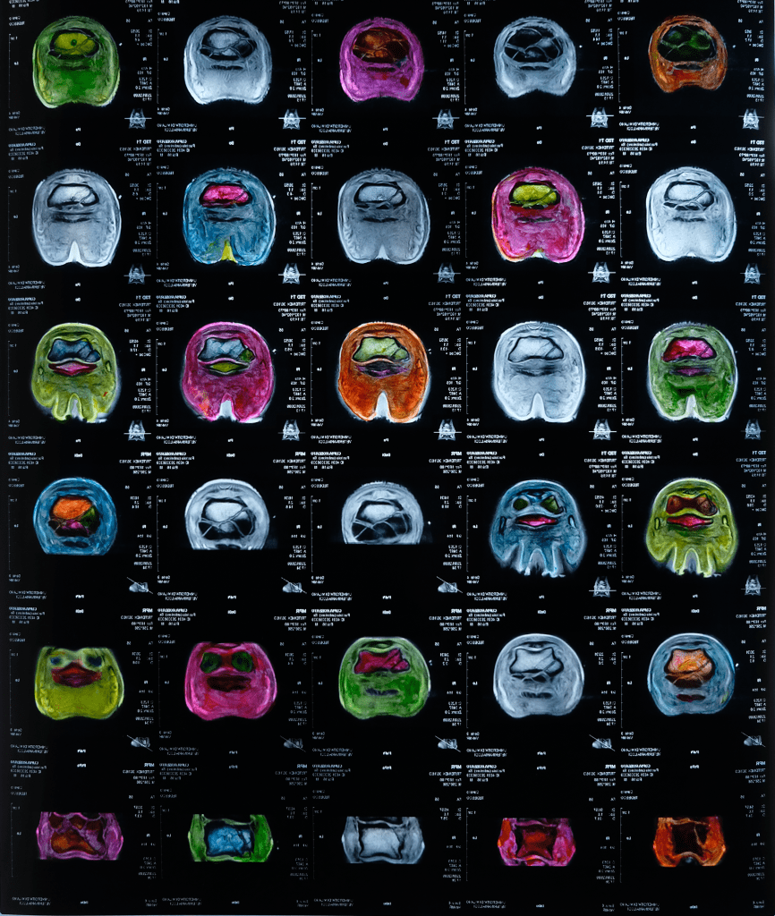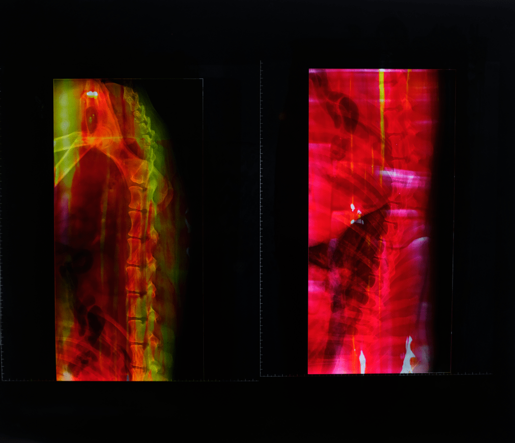 “Dual”,37x26cm, acrilico su radiografia, 2022